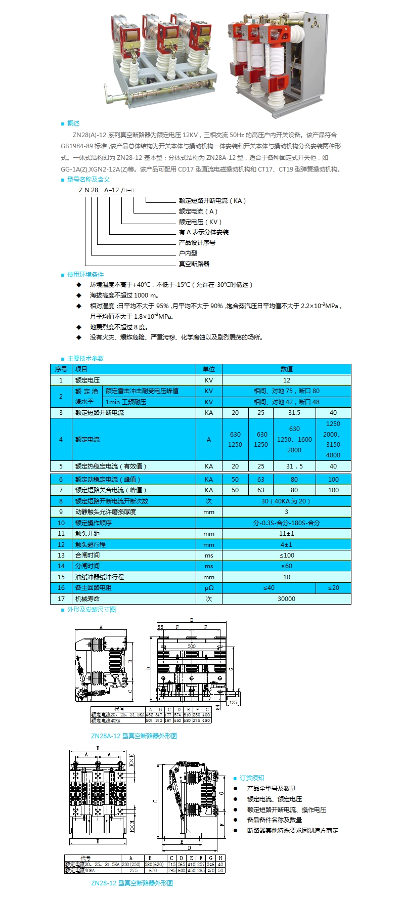 ZN28(A)-12型戶內(nèi)高壓真空斷路器